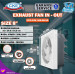 Exhaust fan/ exhaust shutter in-out/ kipas eksos/ kipas ventilasi udara/ blower gedung cocok untuk digunakan di rumah, apartemen, rumah sakit, dan tempat lainnya untuk mempercepat sirkulasi udara di suatu ruang yang memiliki sistem sirkulasi udara yang kurang memadai.